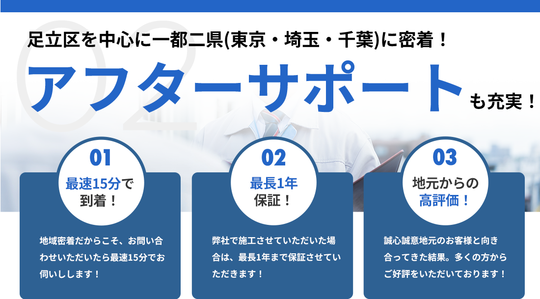 足立区を拠点に、一都二県(東京、埼玉、千葉)