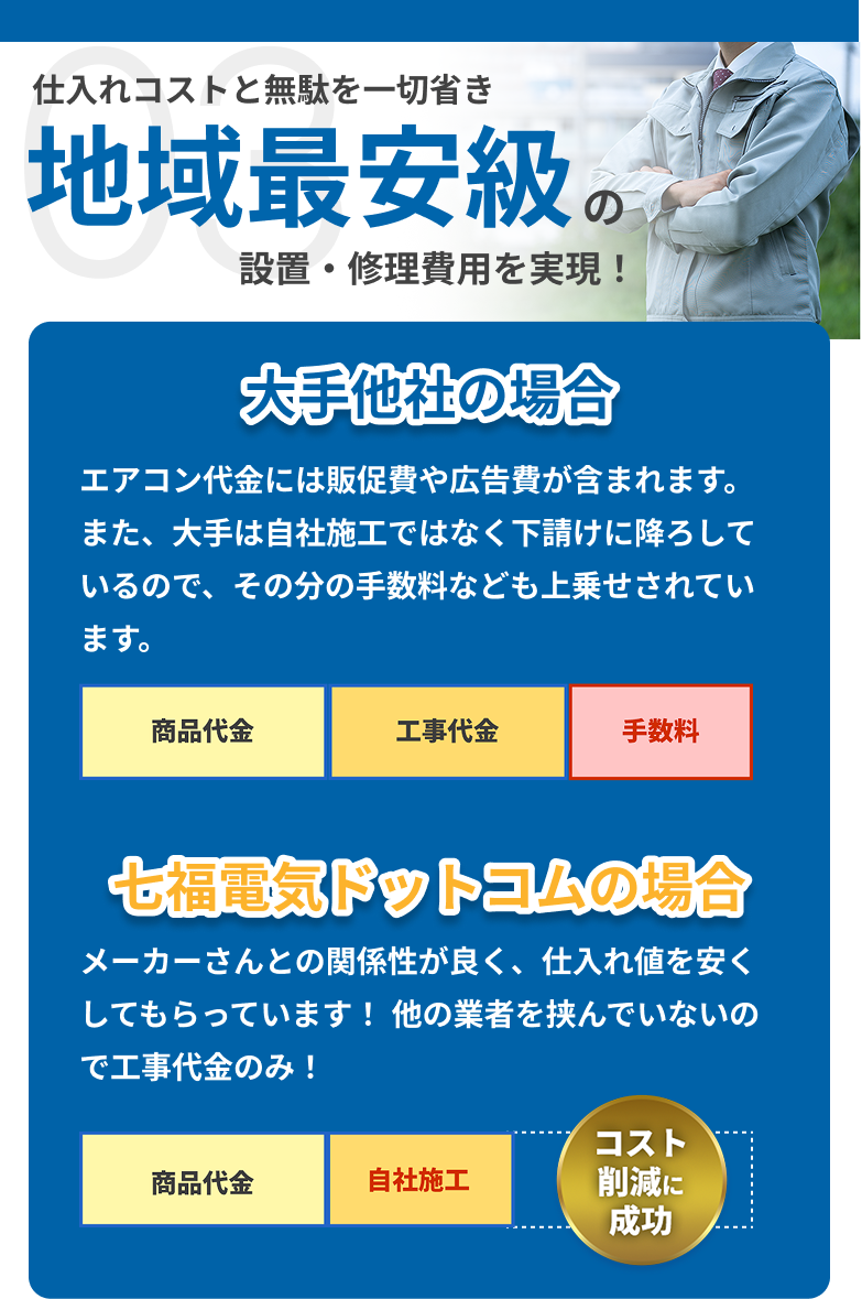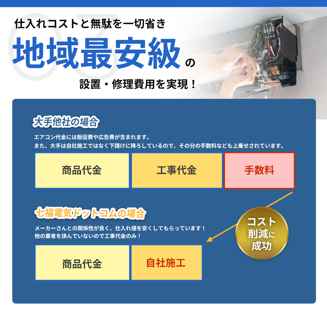 エアコン本体には1年のメーカー保証、工事保証は弊社の独自保証が1年付いています。