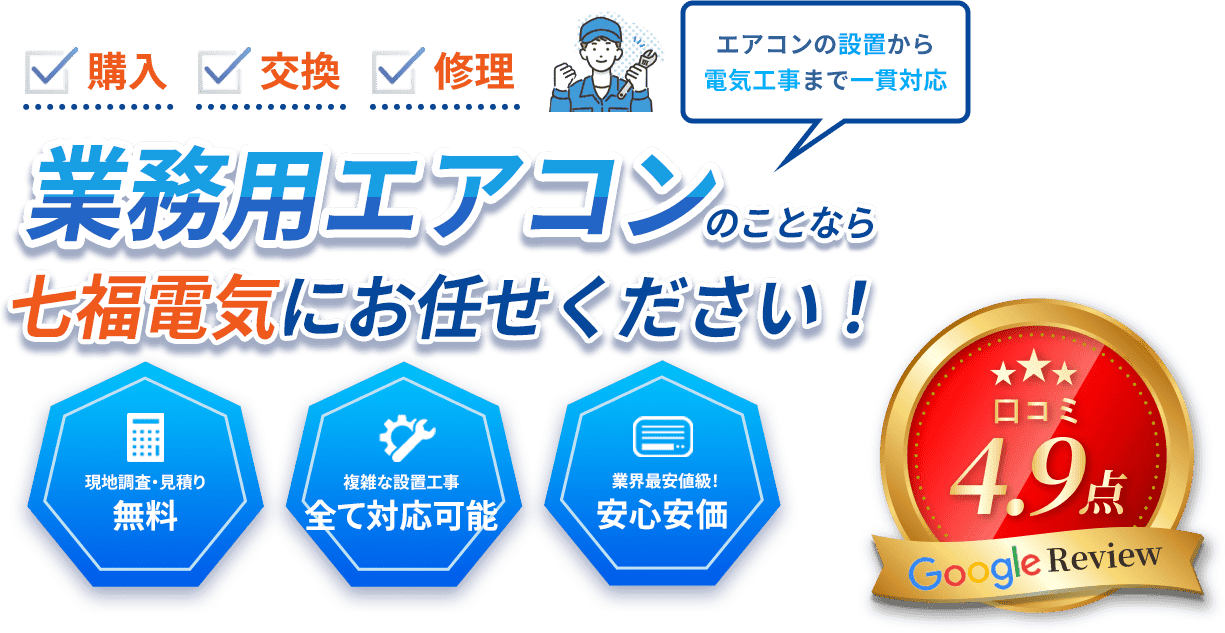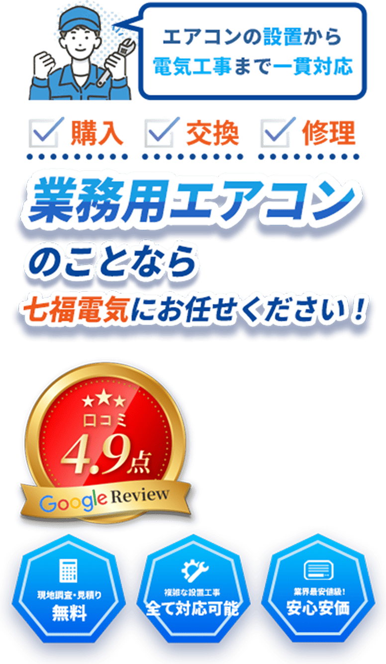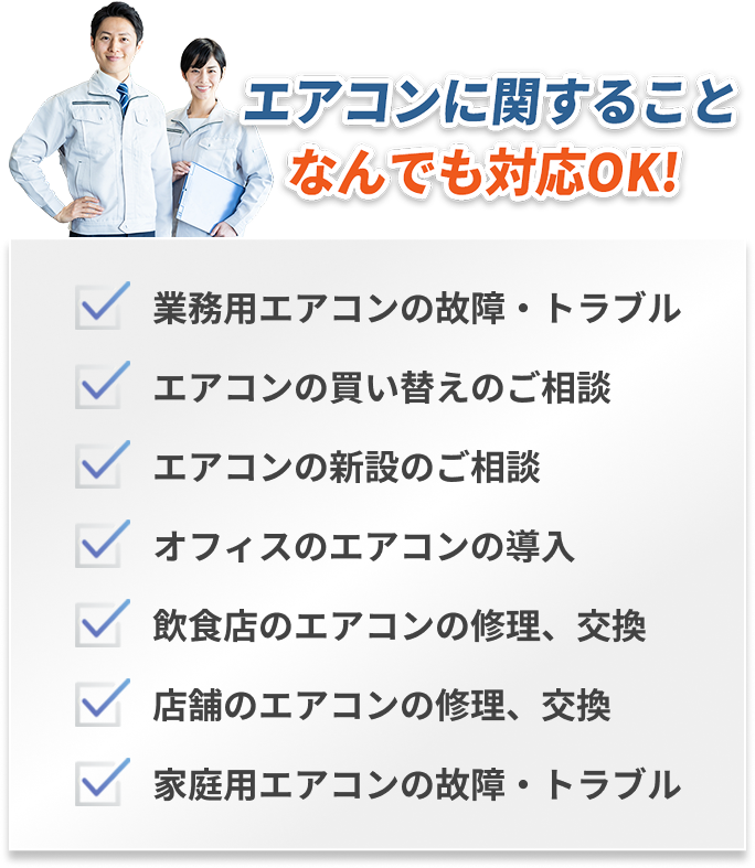 業務用エアコンの機器本体だけでなく、工事代金なども含めて対応しますので、初期費用は一切不要です、まずはお気軽にご相談ください。